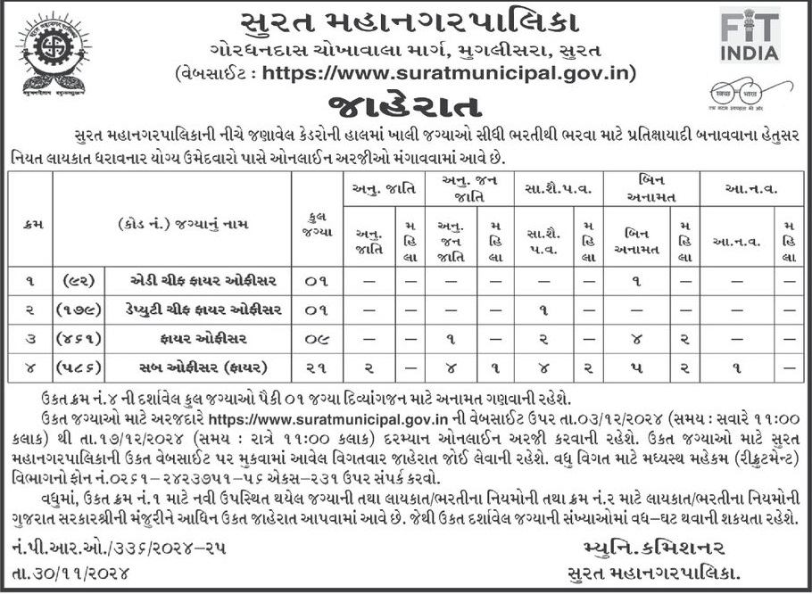 Surat Municipal Corporation has invited online applications for the recruitment of Various 32 Posts 2024.